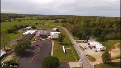 Small town fly-over of Stella, MO.