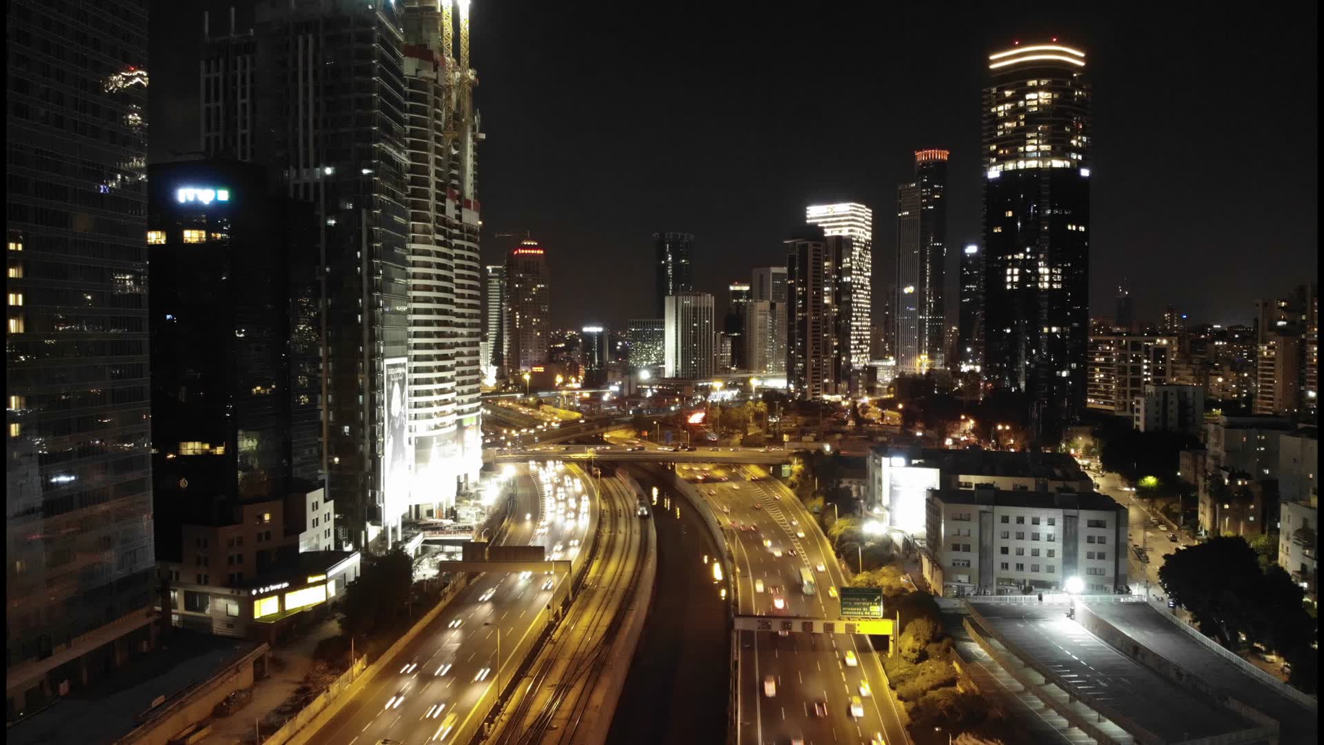 Night time hyperlapse of the biggest highway coming through Tel-Aviv downtown