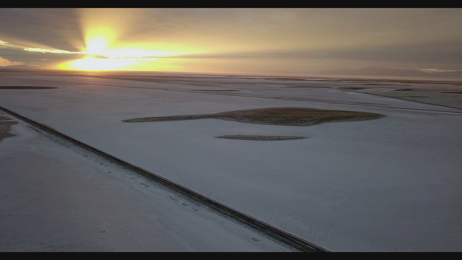 A long sunset over the salt flats at Great Salt Lake