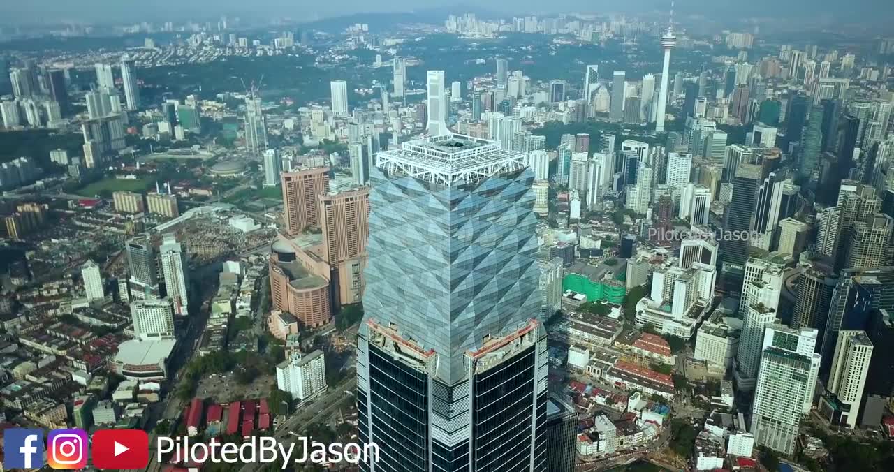 Jason Son created this amazing drone video of the Exchange 106 tower in Kuala Lumpur, Malaysia nearing completion in late 2018. The tower is part of the Tun Razak Exchange development in the eastern part of the KL central business district. This massive planned development will eventually include a total of 26 new buildings. The 106 story tower has an architectural height of stands 492 meters (just over 1.6k ft.), which includes the buildings highly innovative illuminated crown.