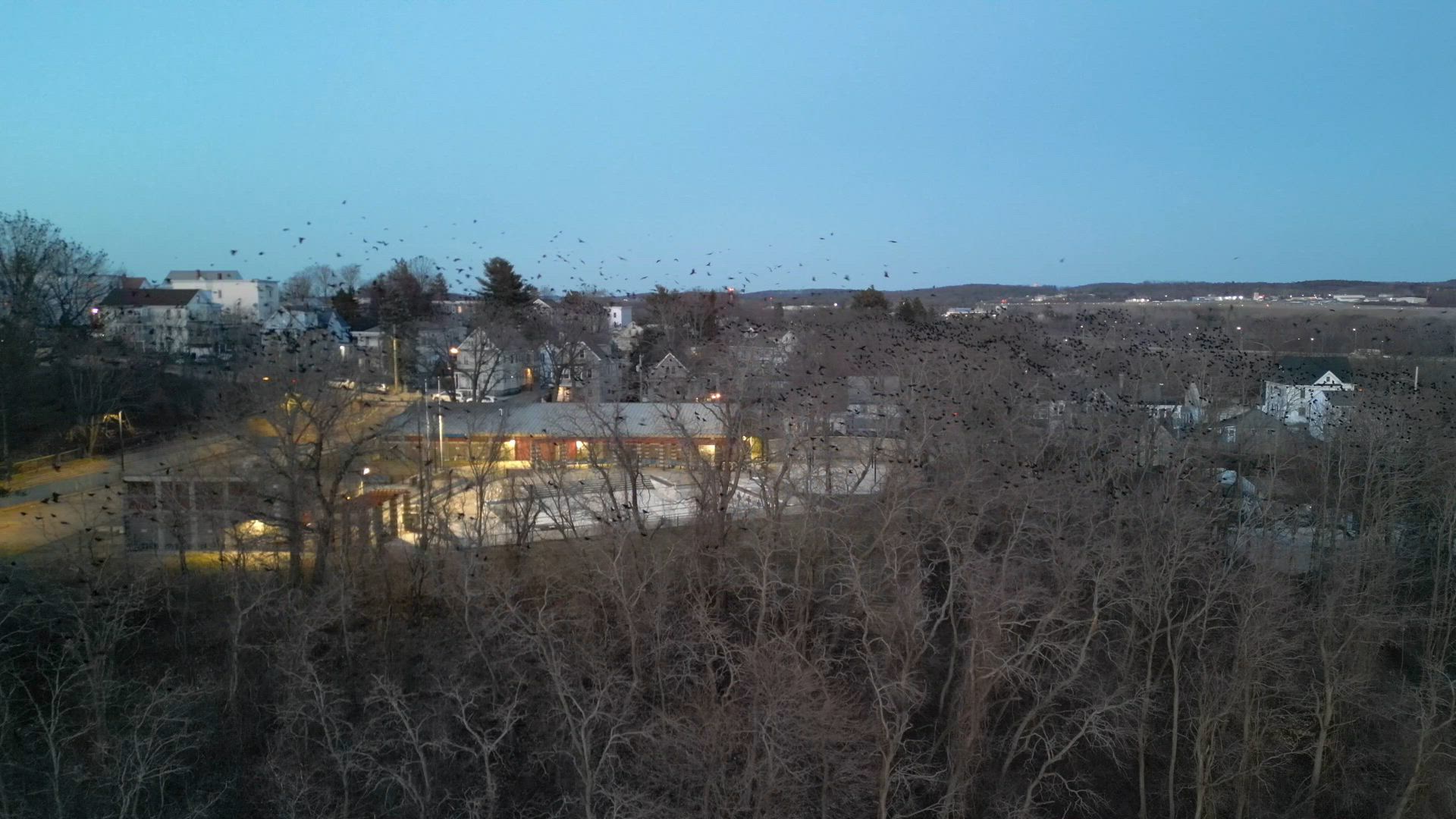 March 18, 2023 under clear skies, wind NW 9MPH, temp 50F; sunset time 6:54PM, on Crow Patrol with a number of initial stops to search for staging locations. Then down near Lawrence General Hospital to watch incoming flight streams arriving and perching in the overnight roost trees. The overall seasonal roost numbers continue to fall off significantly as the Crows return to breeding grounds!
