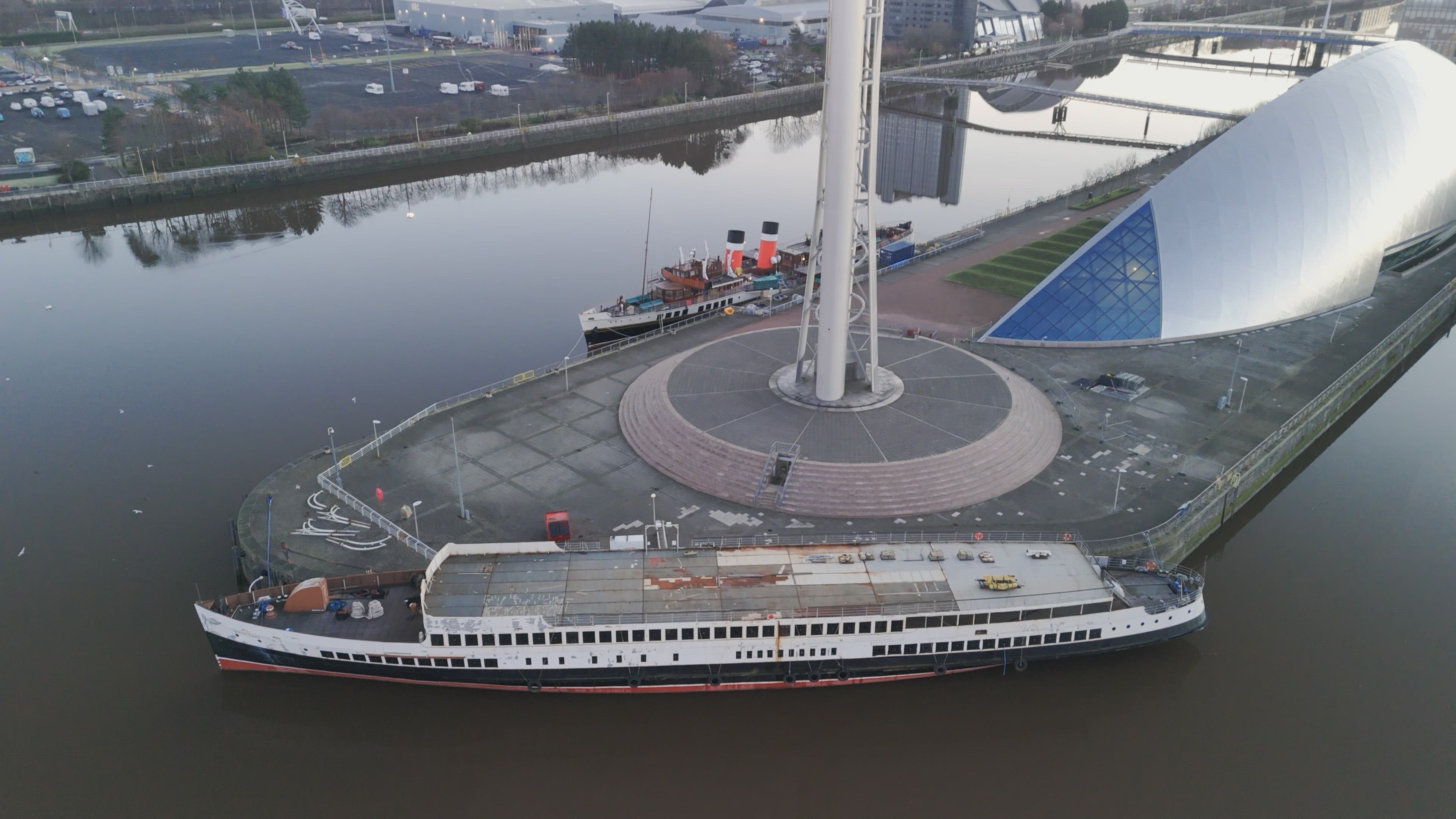 fpv flight on the clyde scotland seeing 2 of the old ships waverley and queen mary