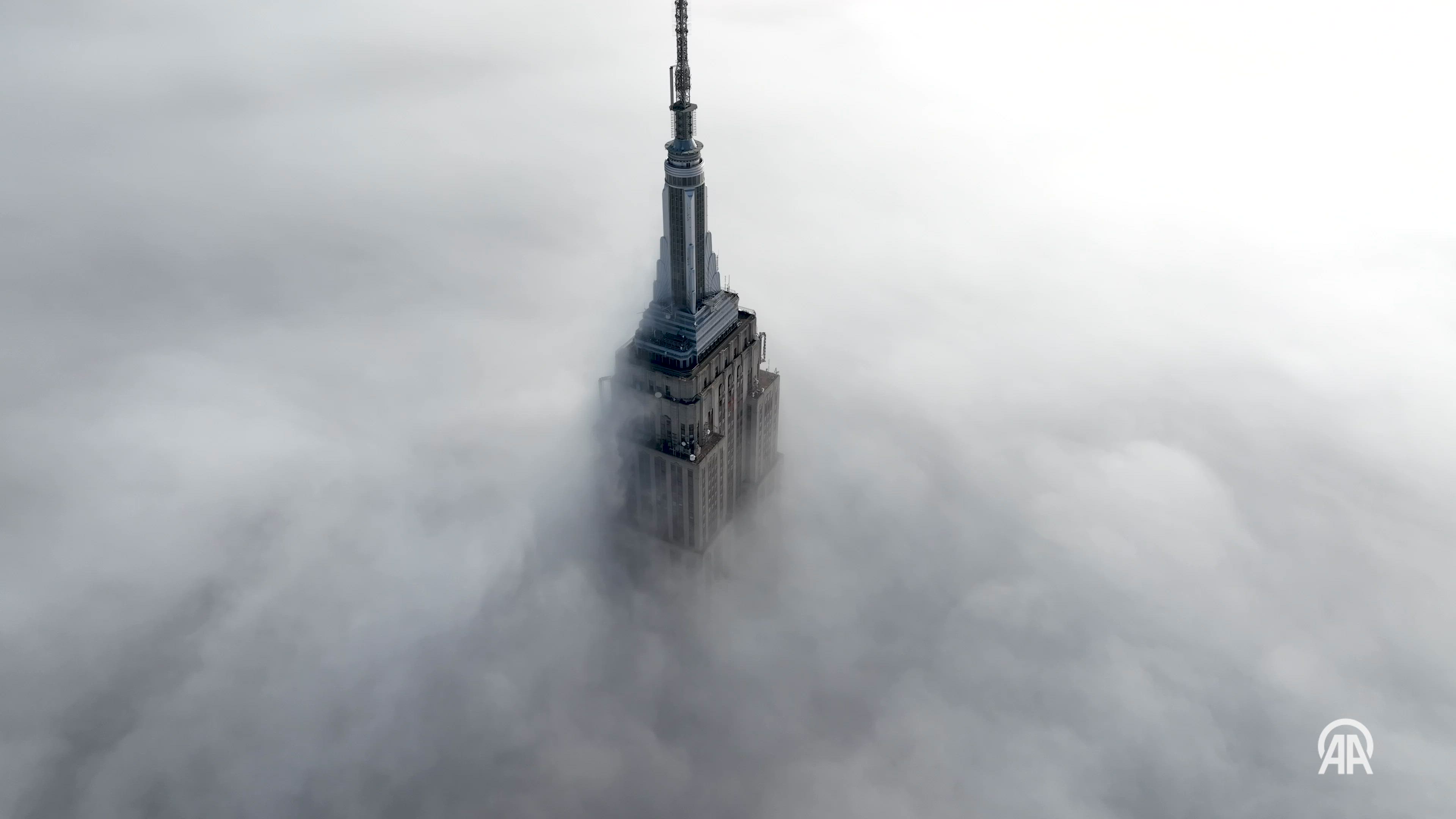 Drone footage shows the Manhattan skyline shrouded by dense fog in New York, US on Tuesday (February 27).