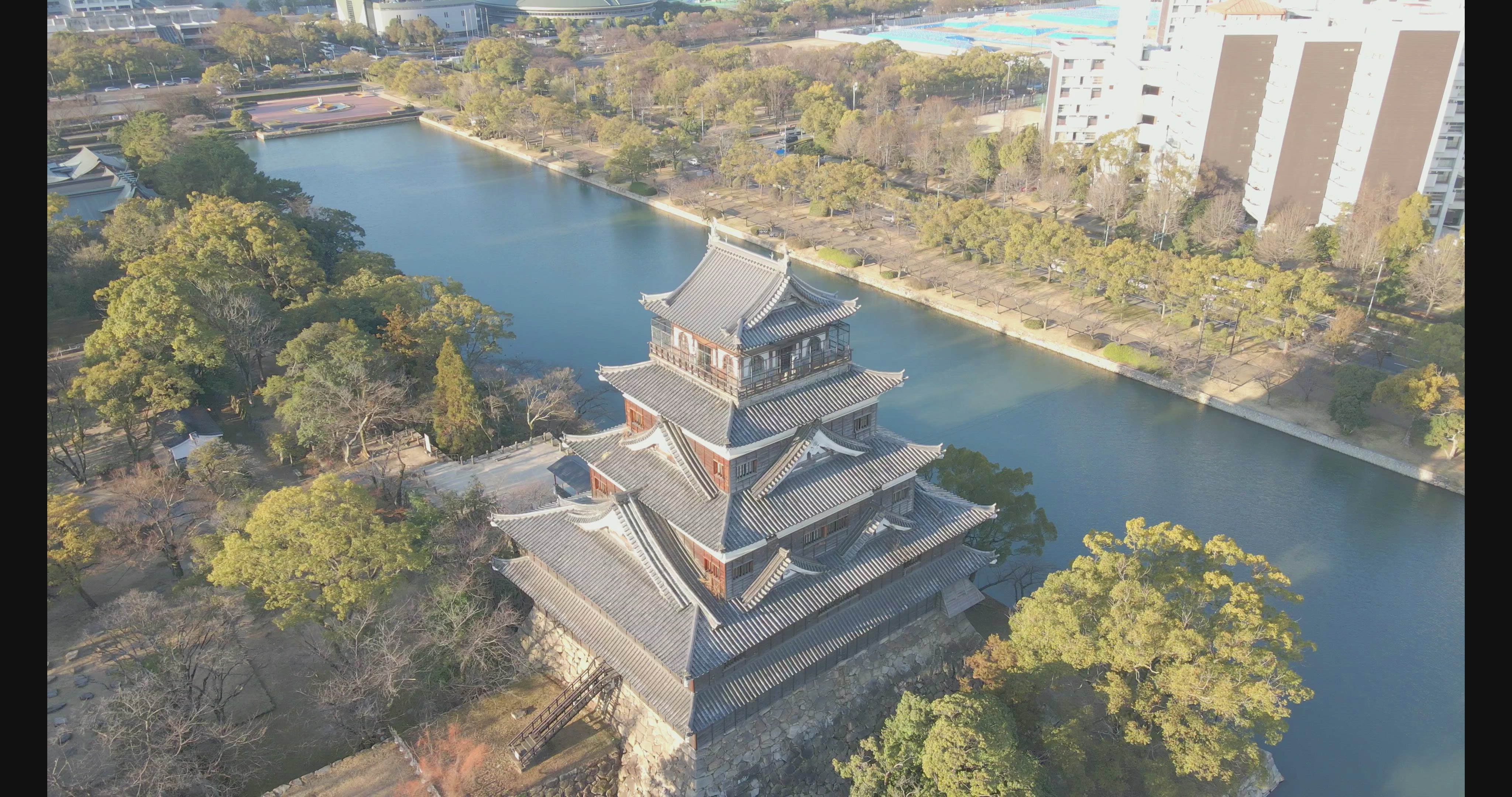 Check out this excellent drone video of Japan's Hiroshima Castle, compliments of dannyb313. The original castle was built in the late 16th century by the feudal warlord Mōri Terumoto. On August 6, 1945, the castle was destroyed by the first of two American atomic bombs dropped on Japan, leading to its surrender and the end of World War II; the bomb detonated at an altitude of about 1.9k ft. (around 580 m) above the Shima Surgical Clinic, less than 1000 meters/yards south of the castle. Hiroshima Castle was rebuilt in the 1950's.