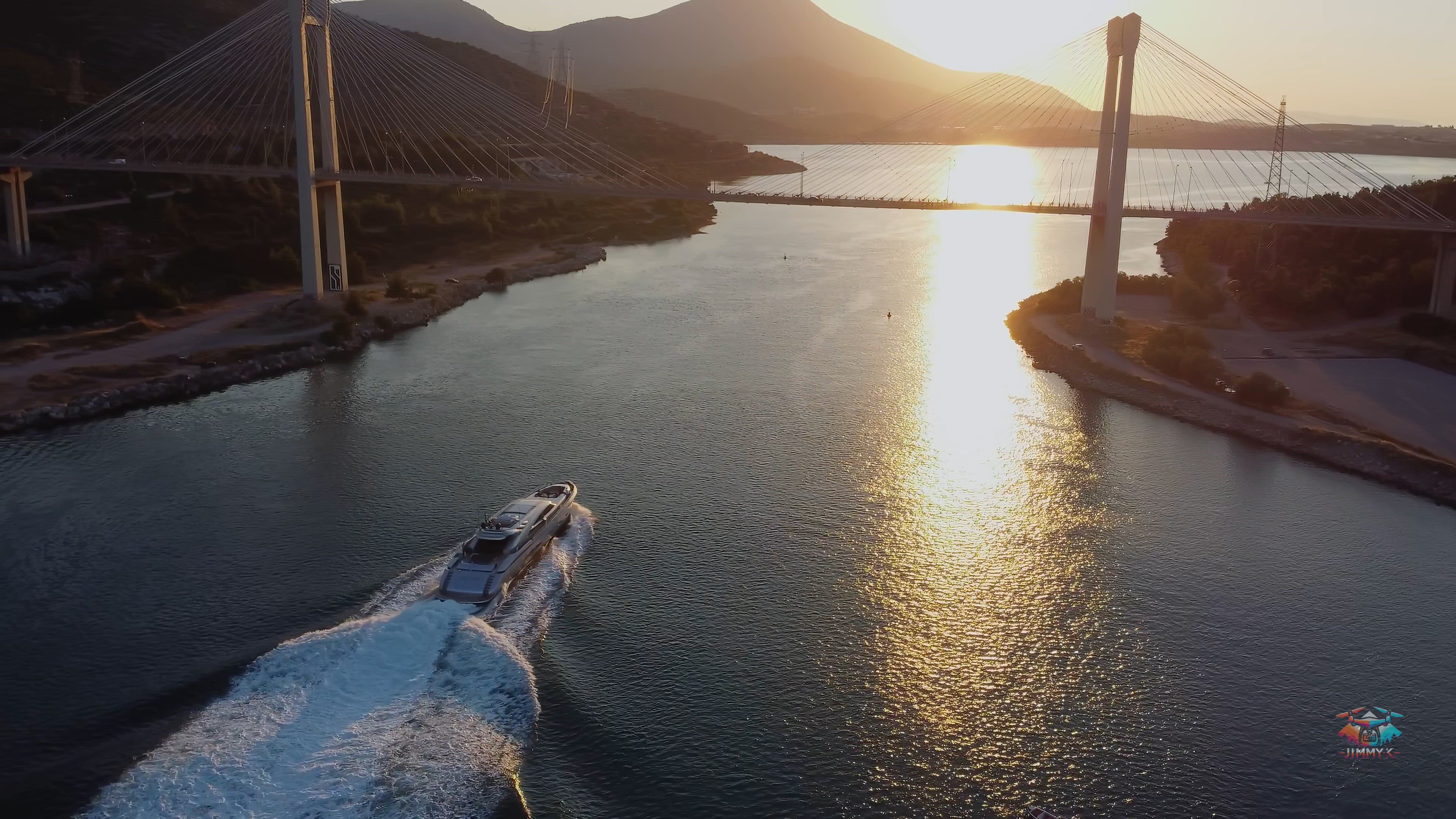 AirVuz contributor Jimmy_K brings us this rather stunning drone video of a yacht passing under the Greece's Euripus Bridge. Opened in 1993, the cable-stayed span connects the city of Chalkida (Chalcis) on the island of Euboea with the Greek mainland to its west. The Euripus Bridge has a total length of just under 2.3k ft. (a bit under 700 m), with its longest span measuring 705 ft. (215 m). Greece's first cable-stayed road bridge, it's the longer and newer of the two bridges which span the strait.