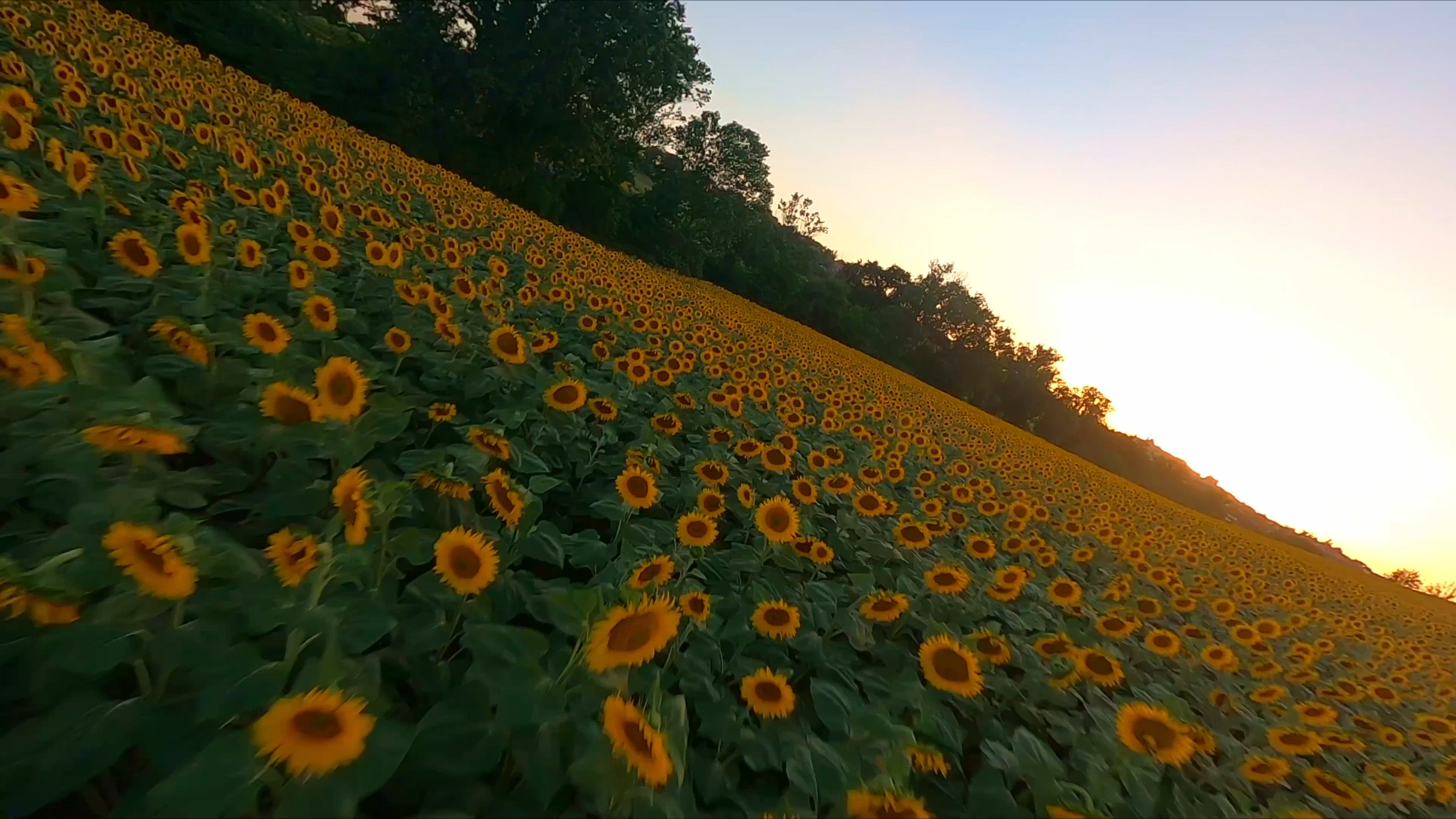 Sunflowers at Sunset! FPV stabilized flight.