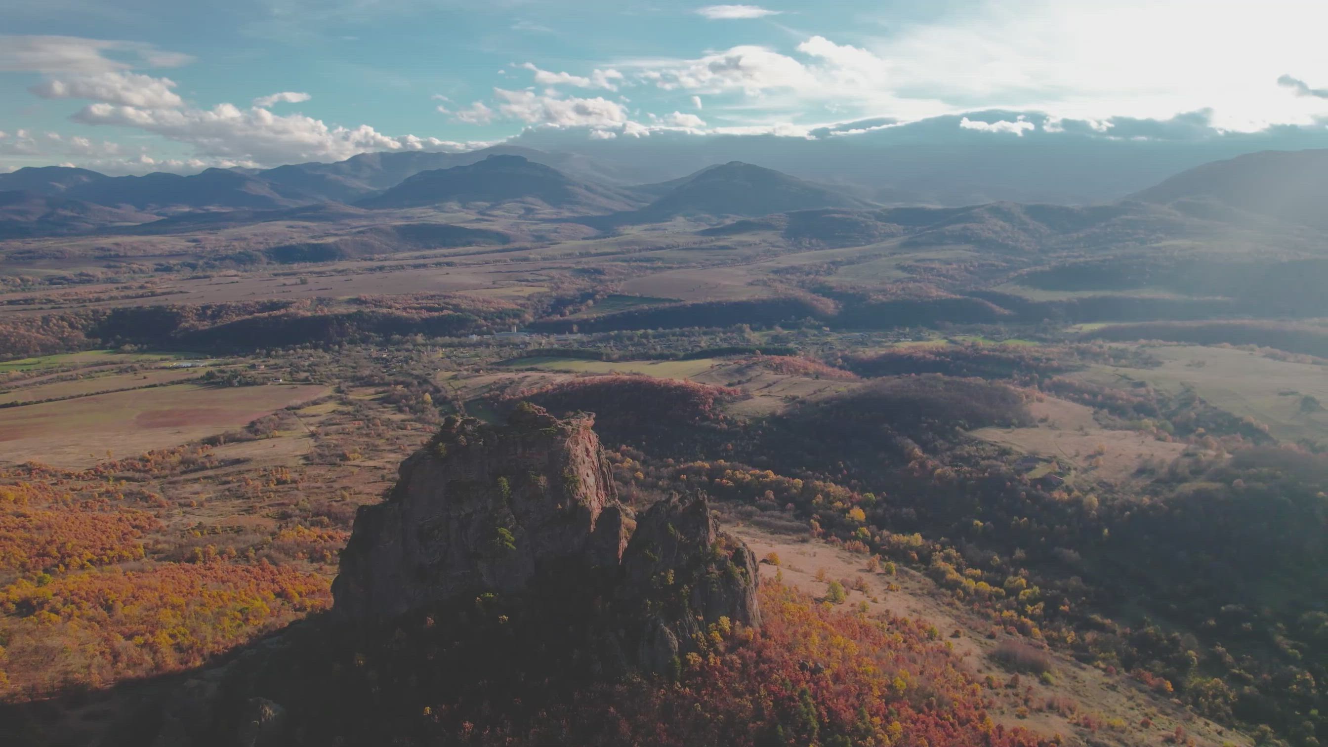 In this drone video by contributor and pilot peter_pierre, you'll get a bird's eye view of Bulgaria's Belogradchik Rocks, one of the natural treasures of this Southeast European country. Comprised of sandstone and conglomerate material, the formation is located in the province of Vidin in the northwestern corner of the country. Lying on the western slopes of the Balkan Mountains chain, some of the rocks reach up to 200 meters (around 660 ft.) in height. The video was filmed during the Fall colors season.