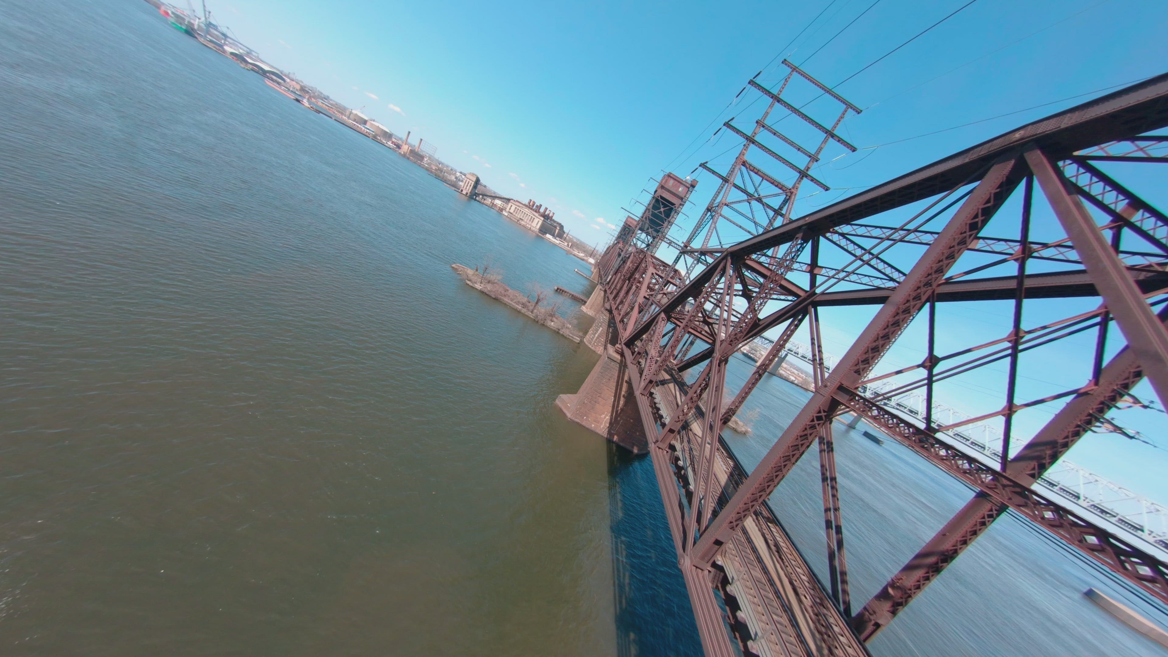 Flew around a train bridge, with Philadelphia in the background! It is rare to see it so far away without any fog!
